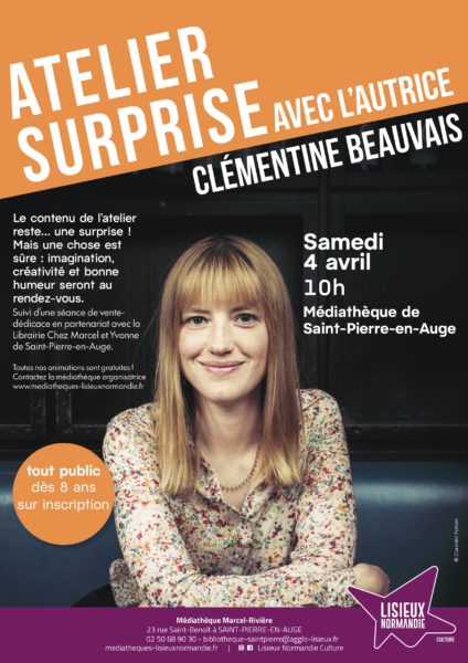 Tous les renseignements sur l'évènement"Atelier surprise avec l’autrice Clémentine BEAUVAIS"