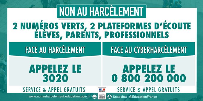 Le harcèlement se définit comme une violence répétée qui peut être verbale, physique ou psychologique. Cette violence se retrouve aussi au sein de l’école : elle est le fait d’un ou de plusieurs élèves à l’encontre d’une victime qui ne peut se défendre. Lorsqu’un enfant ou un adolescent est insulté, menacé, battu, bousculé ou reçoit des messages injurieux à répétition, on parle donc de harcèlement. Insidieusement, ces agressions répétées impactent sensiblement l’enfance et l’adolescence de près de 700 000 élèves environ, toutes catégories sociales confondues (source enquête victimation 2015 – DEPP).