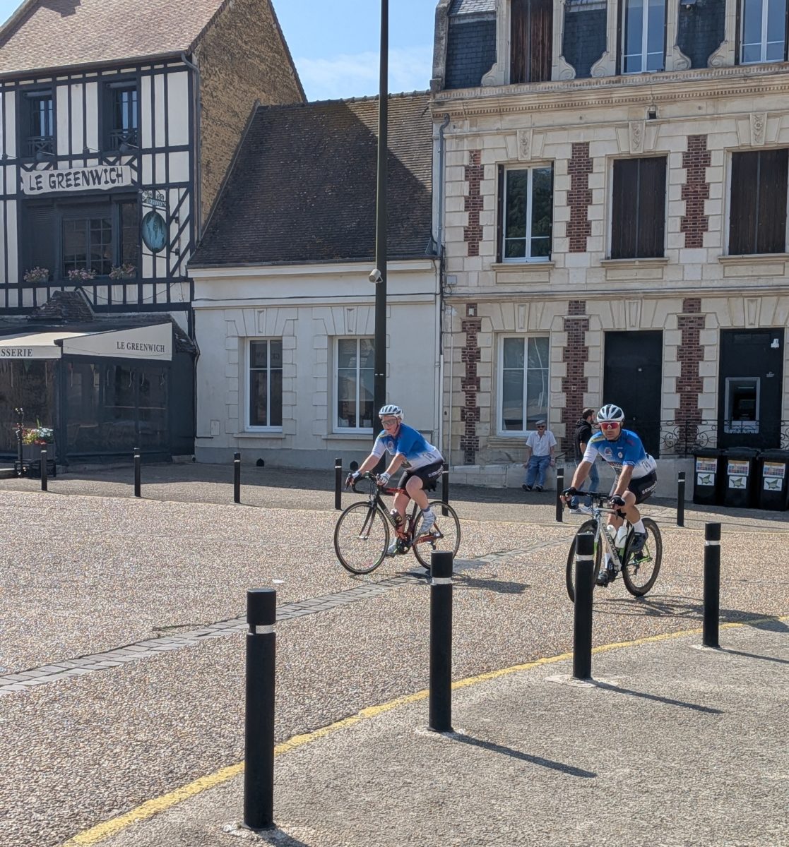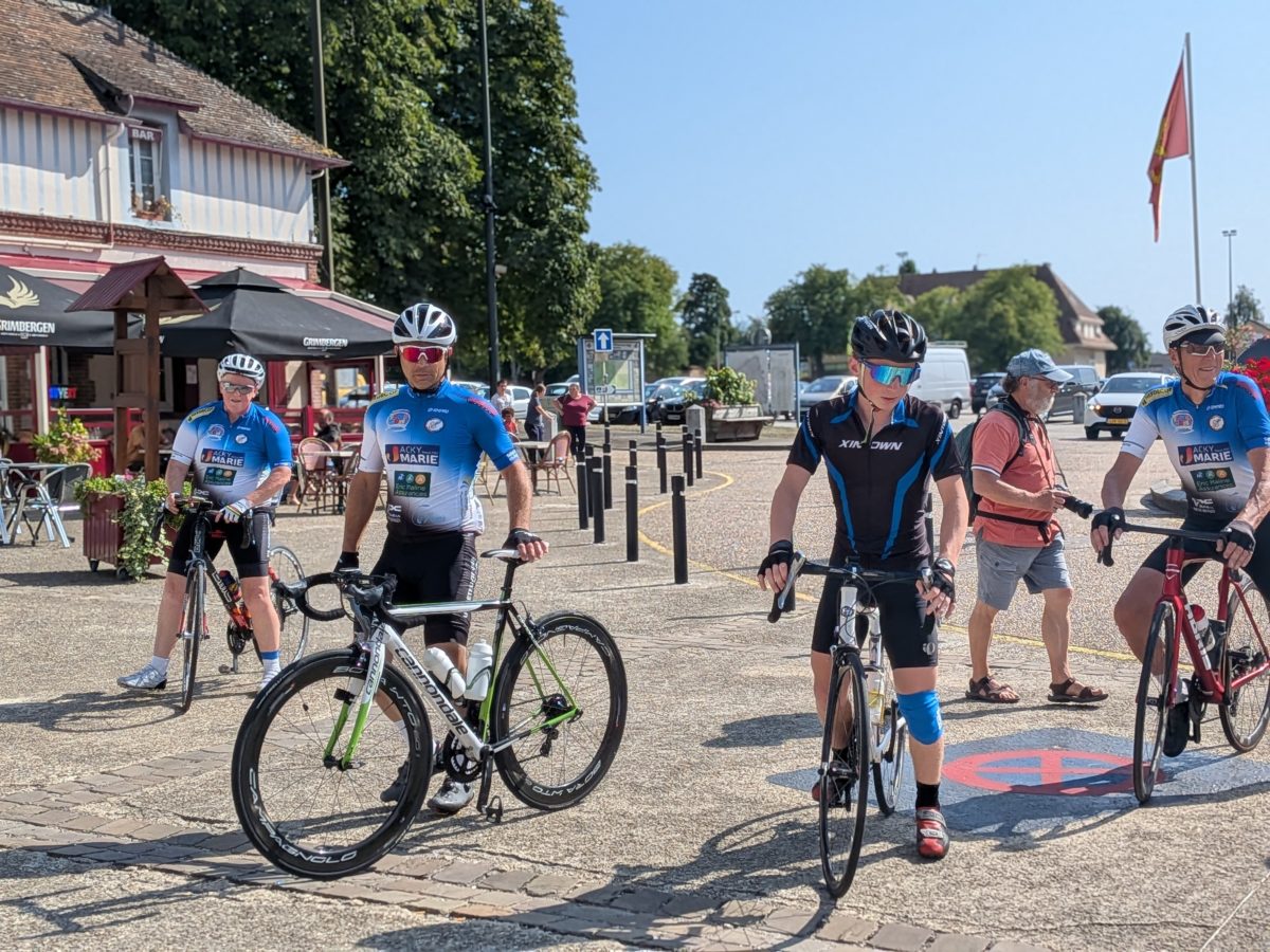 Roger Galienne et 3 cyclistes de 𝗹’𝗨𝗦𝗣 𝗖𝗬𝗖𝗟𝗜𝗦𝗠𝗘 ont rejoint Guillaume et Yaël à Saint Désir pour les accompagner durant quelques km sur les routes du Pays d’Auge.