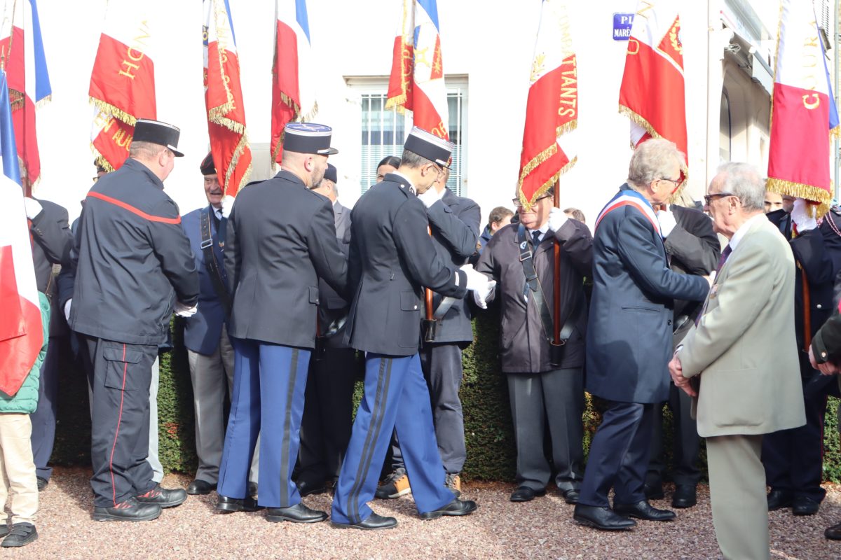- En présence des porte-drapeaux, des associations patriotiques, des représentants de la Gendarmerie, des sapeurs-pompiers et des élu(e)s.